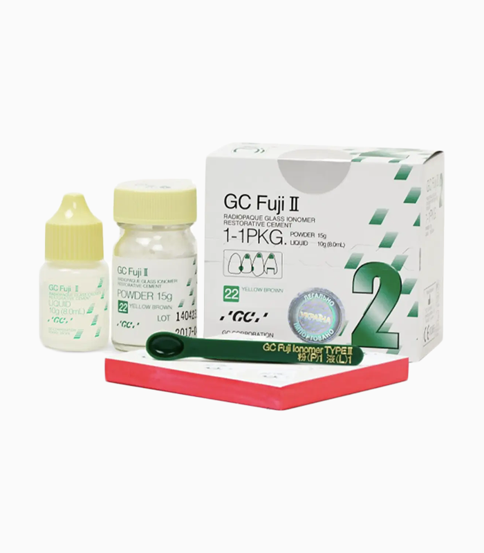 GC Fuji II® est un ciment de verre ionomère auto-durcissant, résistant à l’eau, avec une libération de fluor et une finition rapide. Disponible en plusieurs teintes et radiopaque.