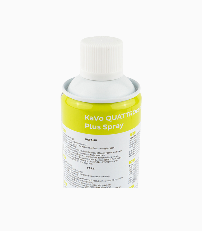 Spray d’entretien Kavo Quattrocare Plus : nettoie, lubrifie et prolonge la durée de vie de vos instruments en un seul geste.